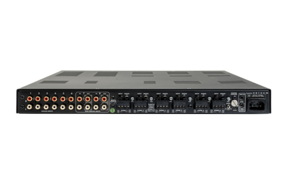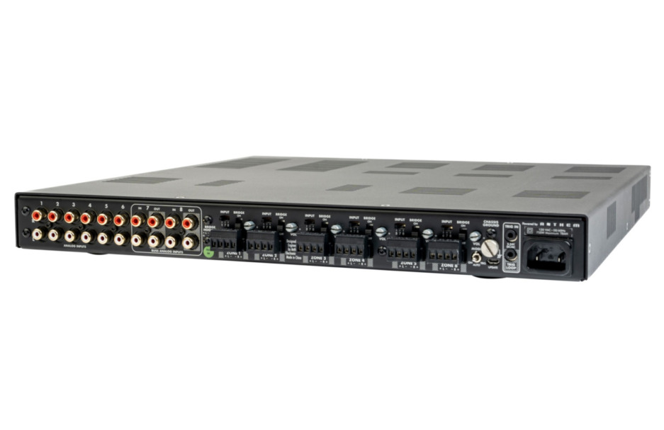 Amplificatore multicanale sia per milti-room che per home theater. 12 canali da 75W su 8ohm o 150W su 4ohm. Possibilitร di mettere a ponte i canali per raddoppiare la potenza d’uscita in base al carico. Stadi di potenza in classe Ultra-Class-D. THD 0,002% per la massima qualitร audio. 6 ingressi RCA analogici di zona e 2 ingressi RCA analogici globali selezionabili. Terminazioni per i diffusori che accettano cavi fino a AWG12 Accessori per montaggio a rack 1U in dotazione.