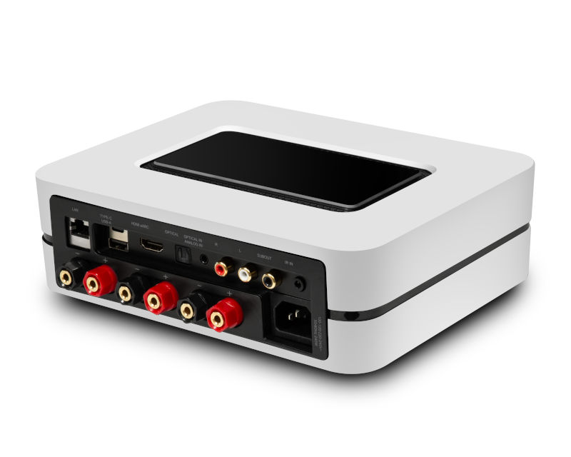Streaming player amplificato (2x 100 0 3x 80 watt di tipo Hybrid Digital) ideale per gestire sorgenti audio digitali in rete, wireless e cablate, con ingresso HDMI eARC, USB-C e uscita cuffia di tipo THX AAA.