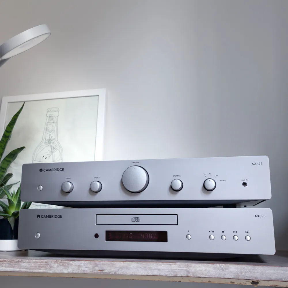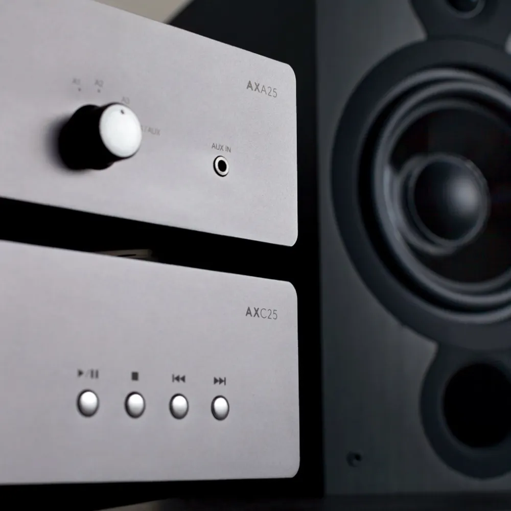 Cambridge AXA25 è un ottimo amplificatore integrato in classe AB e con i suoi 25 W per canale è in grado di pilotare speaker da scrivania e piccoli diffusori da scaffale. Un abbinamento ideale è con la linea di diffusori Cambridge, in particolare con il modello bookshelf SX50.