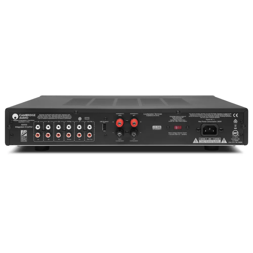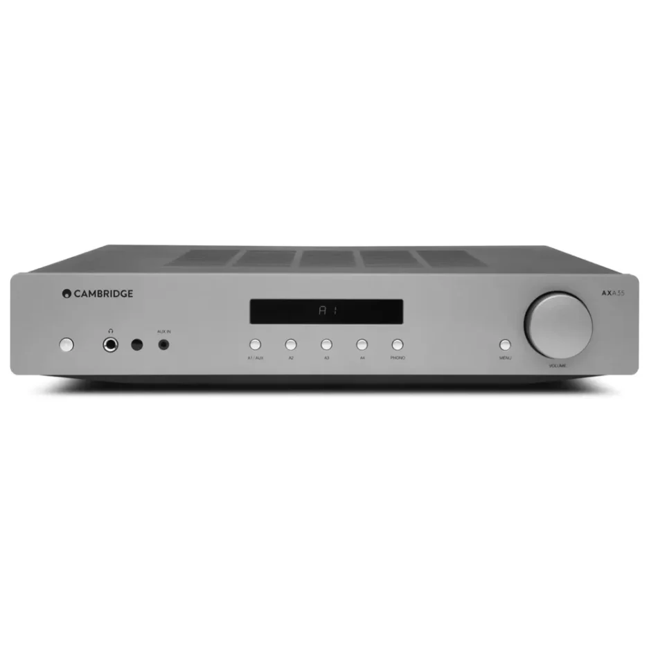 Cambridge AXA35 è un amplificatore integrato con 35 W di potenza per canale perfetto per piccoli diffusori da scaffale o scrivania. Presenta 4 ingressi analogici stereo RCA e un ingresso Phono MM, oltre ad un ingresso AUX 3.5 mm sul pannello frontale, utile per il collegamento di Smartphone e Tablet. Dotato di display per il controllo della riproduzione e un’uscita cuffie da 6.35 mm.