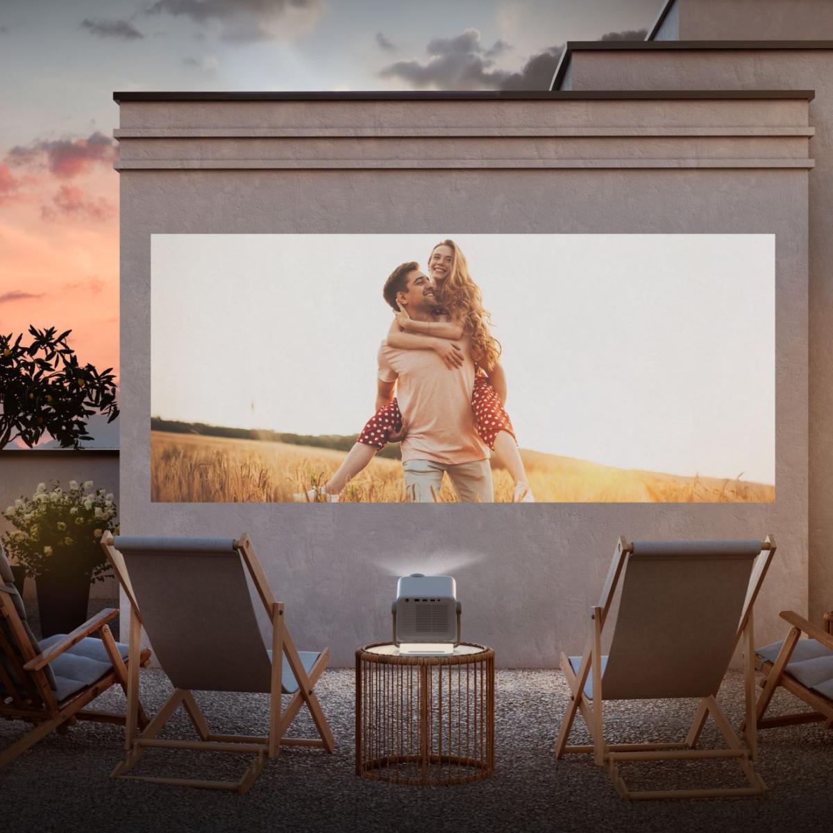 Crea lโesperienza di visione definitiva. Questo proiettore si adatta a qualsiasi dimensione dello schermo, da 65 a 200 pollici, cosรฌ puoi proiettare su una parete del tuo soggiorno o su uno schermo gigante nel tuo giardino.