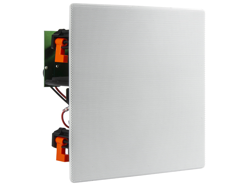 Diffusore da incasso a soffitto di forma quadrata con altoparlante coassiale rotondo montato angolato, 2 vie, 1 tweeter a cupola in alluminio da 25mm con lente acustica, 1 Bass/Midrange da 165mm con cono in Policellulosa, 87dB, 20-100W, 8 ohms, ampia dispersione sonora, dimensioni incasso 219x219mm, profondità di montaggio 125mm, semplice installazione con XL-2 Bracket, griglia magnetica e finitura bianca verniciabile, si integrano perfettamente a filo muro, costruzione accurata anti-vibrazioni.