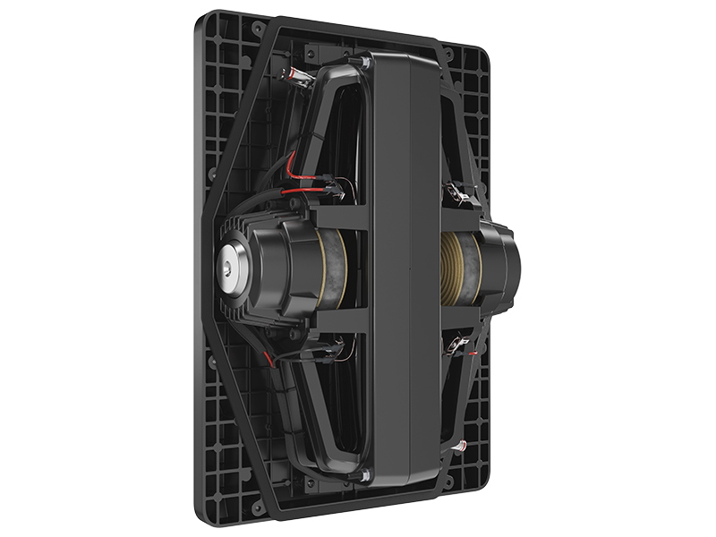 Subwoofer da incasso a muro. 2 Woofer a lunga escursione da 390mm x 95mm con cono in Carbon-X, magnete al super-neodimio e sospensione ART. Frequenza minima 17Hz (DIN). Potenza max 500W. Amplificatori consigliati: Paradigm X-500 e Paradigm SVX-1202. Impedenza 8 ohm. Chassis ultra rigido in alluminio stampato con rinforzi interni e alette di fissaggio in alluminio su cartongesso. Morsetti in bagno di nickel per i cavi di ingresso. Per il montaggio necessità di BackBox SFC12-SYS (Backbox). Basso profilo esterno di montaggio. Griglia magnetica bianca in metallo verniciabile.