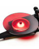 Questo nuovo modello, realizzato a mano in Europa, richiama platealmente la forma del fulmine nel logo della band e presenta un piatto in vetro rosso traslucido ad alta massa spesso 10 mm, sotto il quale spicca il plinto in MDF nero dipinto a mano. A impreziosire questa estetica già molto originale, troviamo un anello LED posizionato sotto il sub-piatto in acrilico che illumina l’intera unità di trasmissione a cinghia.