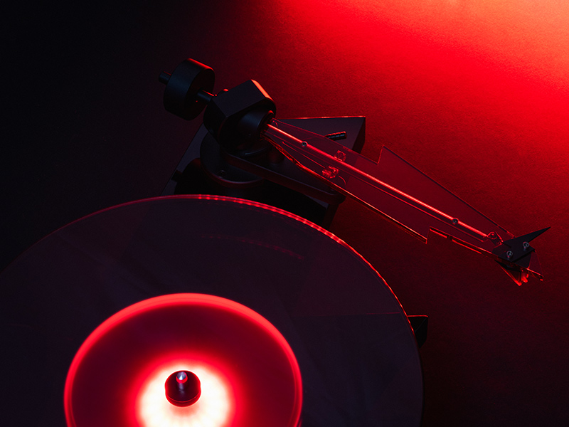 Altro elemento chiave è il braccio trasparente sempre a forma di fulmine, alla cui estremità è stata inserita una testina Ortofon 2M Red già  impostata e calibrata in fabbrica.