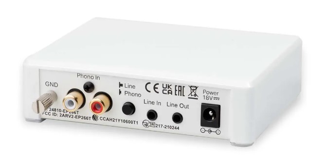 Phono Box E BT5 offre due ingressi separati, un ingresso phono e uno di livello di linea, oltre a due uscite separate. Può essere utilizzato come un normale stadio phono MM che si collega a qualsiasi amplificatore hifi tramite la sua uscita di livello di linea (jack da 3,5 mm) oppure può essere utilizzato come streamer Bluetooth. Prende il segnale di ingresso analogico fornito, lo converte e invia audio digitale a qualsiasi ricevitore Bluetooth entro un raggio di 10 m. Tali dispositivi potrebbero essere cuffie Bluetooth, altoparlanti o qualsiasi altro ricevitore Bluetooth.