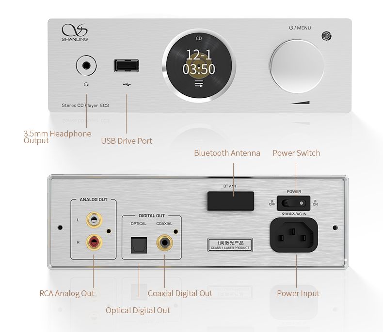 Lo Shanling EC3 si basa sul collaudato lettore CD80 Philips e sulla testina laser di alta qualità Sanyo HD850 . Questo garantisce un’eccellente stabilità e una lettura CD senza errori, consentendo al modello di competere con le prestazioni dei vecchi lettori CD di fascia alta introdotti dall’azienda negli ultimi 30 anni.