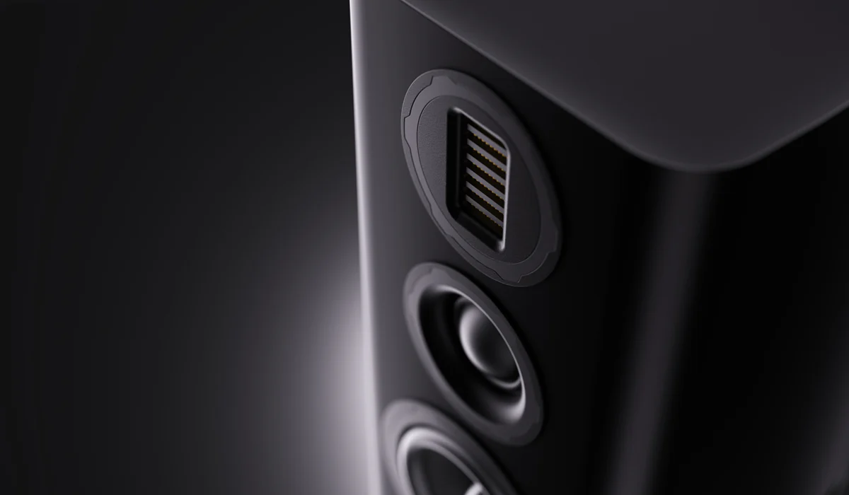 Invece di utilizzare una cupola o un cono convenzionali per spingere l’aria in avanti, un AMT utilizza un diaframma pieghettato realizzato in un materiale ultrasottile e leggero (spesso un film polimerico). Potenti magneti sono posizionati su entrambi i lati del diaframma, creando un potente campo magnetico. Quando un segnale audio passa attraverso le tracce conduttive, il diaframma viene energizzato, causando la contrazione e l’espansione delle pieghe. Mentre le pieghe si muovono, “comprimono” ed “espandono” l’aria tra di esse, spingendola fuori in modo altamente controllato ed efficiente. Questo metodo consente all’AMT di spostare quattro volte più aria rispetto a un tweeter a cupola tradizionale con la stessa superficie, con conseguente riduzione della distorsione (poiché il diaframma si muove meno di un tipico tweeter a cupola o a nastro), risposta ai transienti più rapida (grazie al materiale leggero e al movimento minimo), gamma di frequenza più ampia e migliore dispersione.
